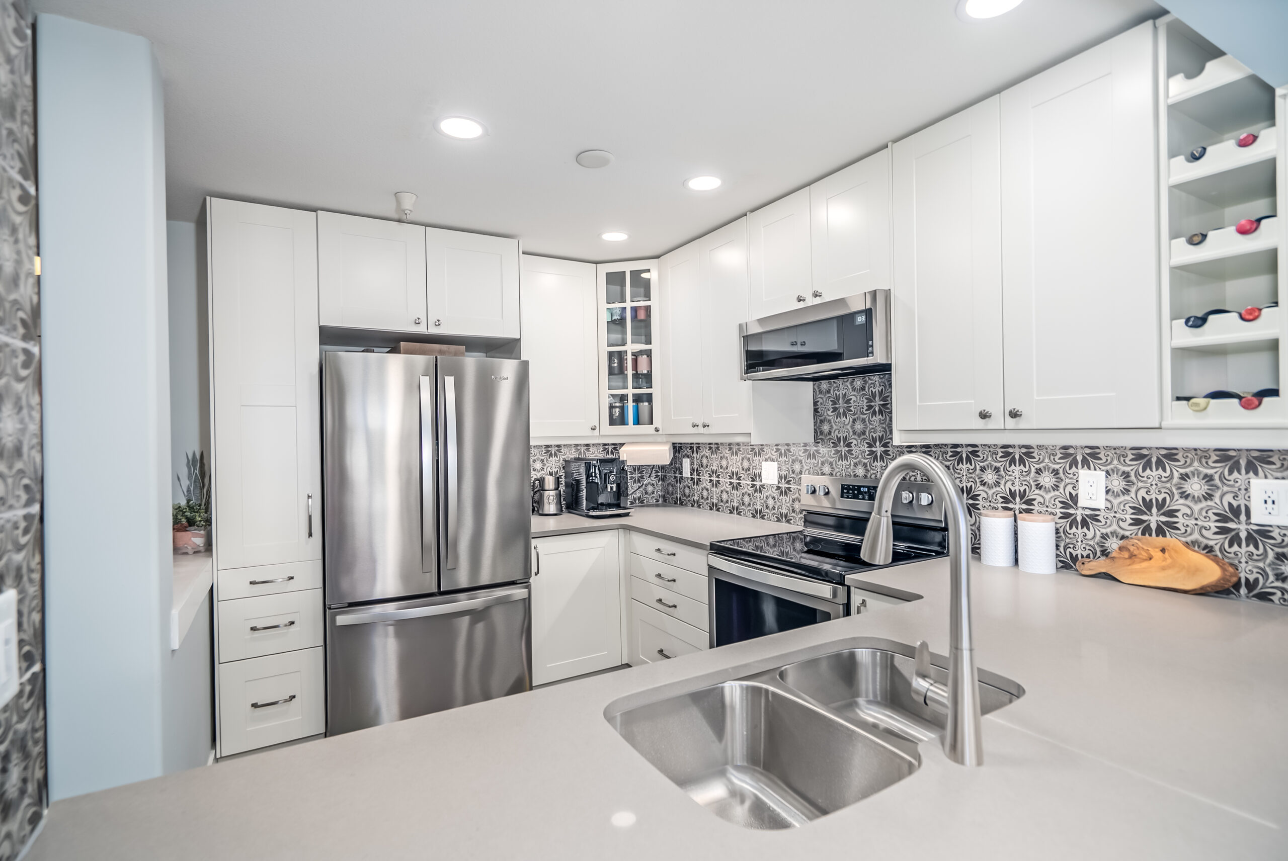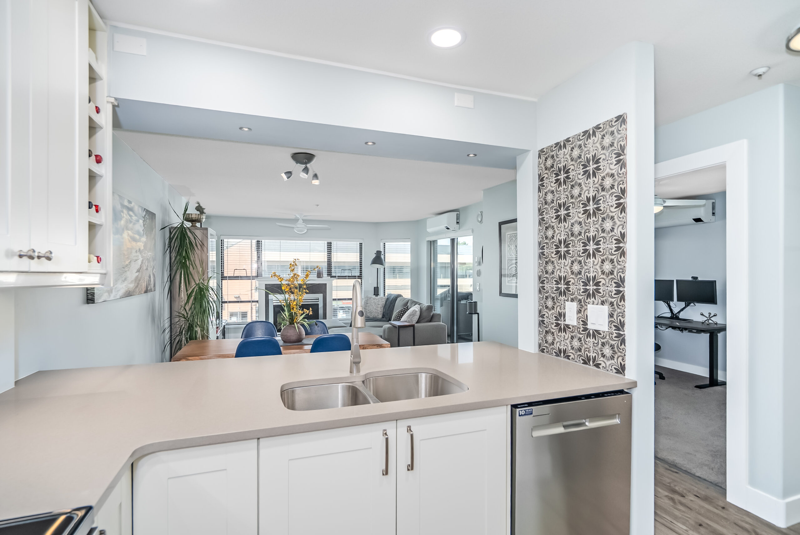 • Open-concept layout: The wall between the kitchen and living area was removed to create a more spacious flow, with a breakfast bar added that seats four—perfect for casual dining or entertaining.